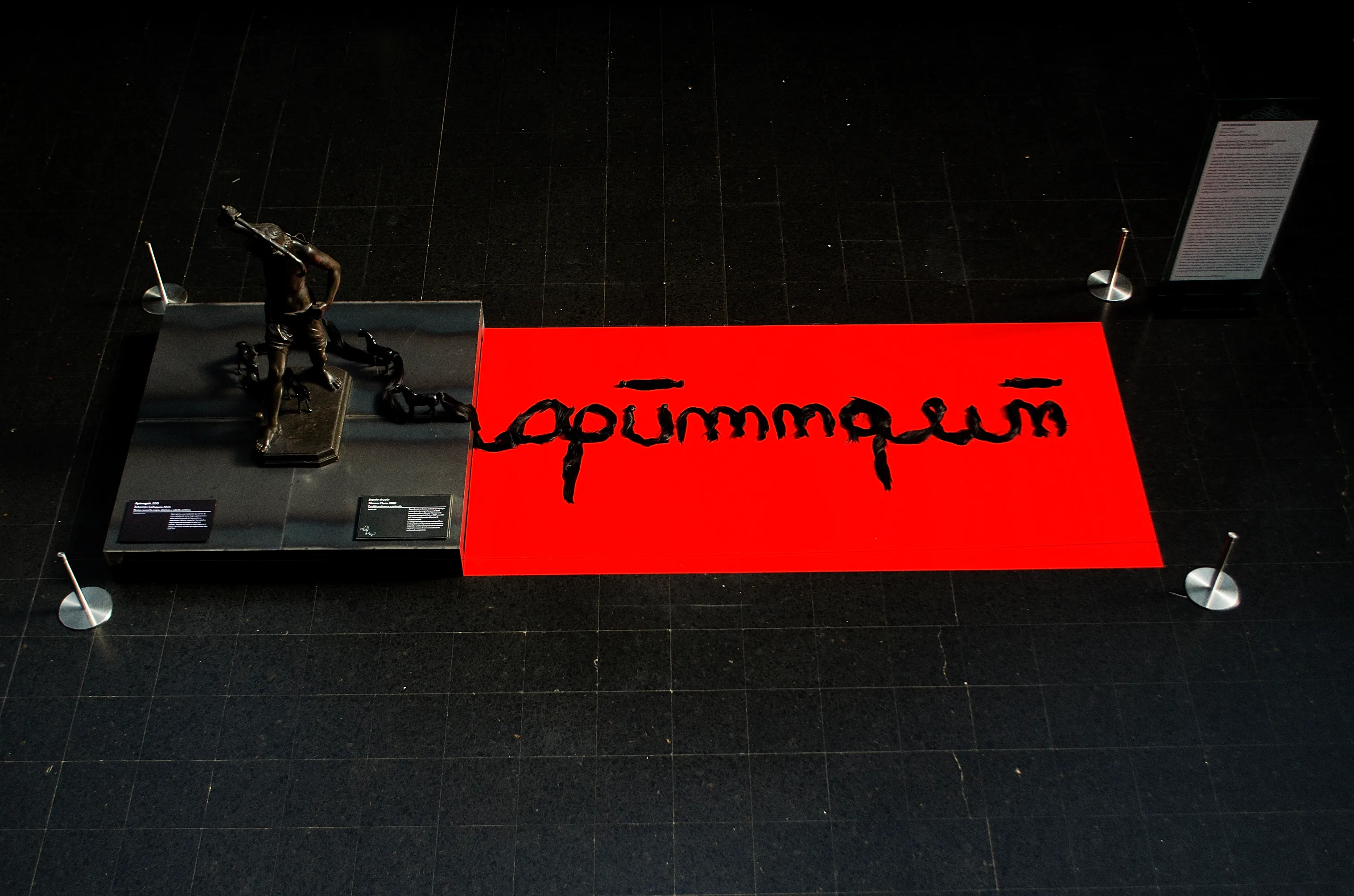 This installation presents black horses stepping on each other’s tails (or hair). This makes a link to the meaning of the name itself – “something that went wrong”-.